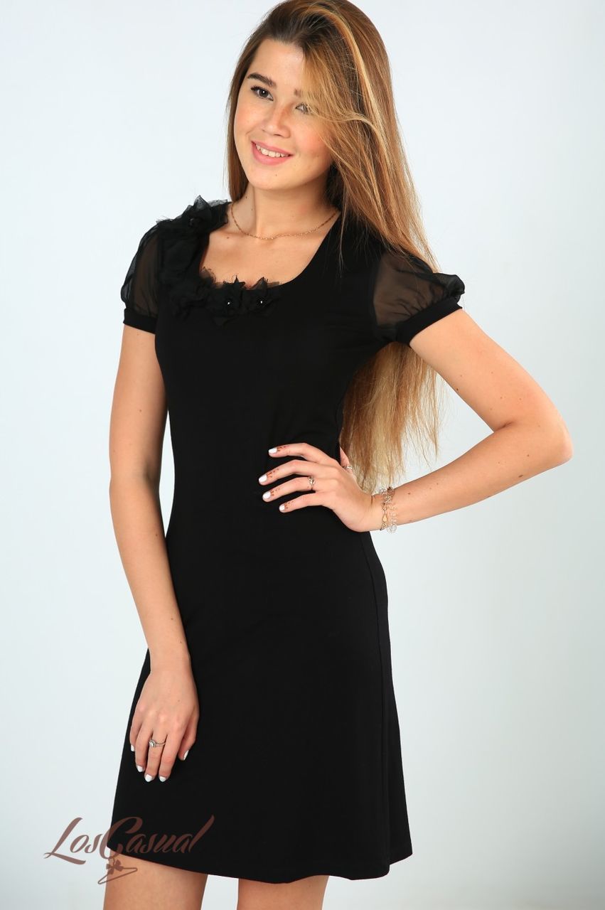 Горловина красиво обыграна пришивной деталью - цветами в тон платья