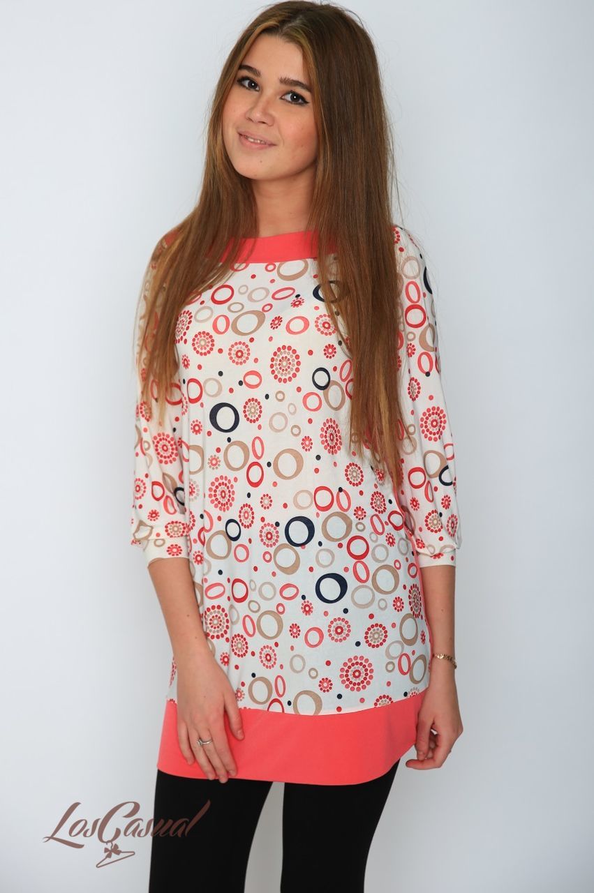Контрастная однотонная спинка, горловина, низ туники