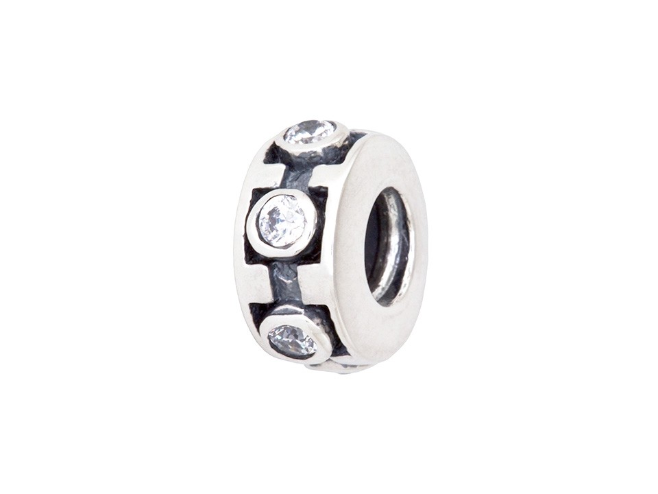 Миниатюрный шарм. За счет своего меньшего диаметра отлично смотрится в качестве разделителя между яркими шармами, например мужду муранским стеклом или шармами, усыпанными камнями.