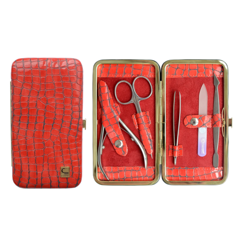 Чехлы представлены в разнообразных вариантах: змеиная кожа, стразы, тиснение, несколько красивых оттенков – как насыщенных и ярких, так и пастельных нежных. Этот маникюрный набор включает в себя стандартные инструменты для маникюра и педикюра Сталекс: ножницы для кутикулы, кусачки, пинцет для коррекции бровей, двустороннюю лопатку и стеклянную пилочку.