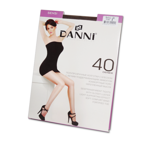 Женские полупрозрачные колготки с блеском DANNI Sensi плотностью 40 ден, с легким поддерживающим эффектом! Укрепленным мыском, комфортным эластичным поясом.